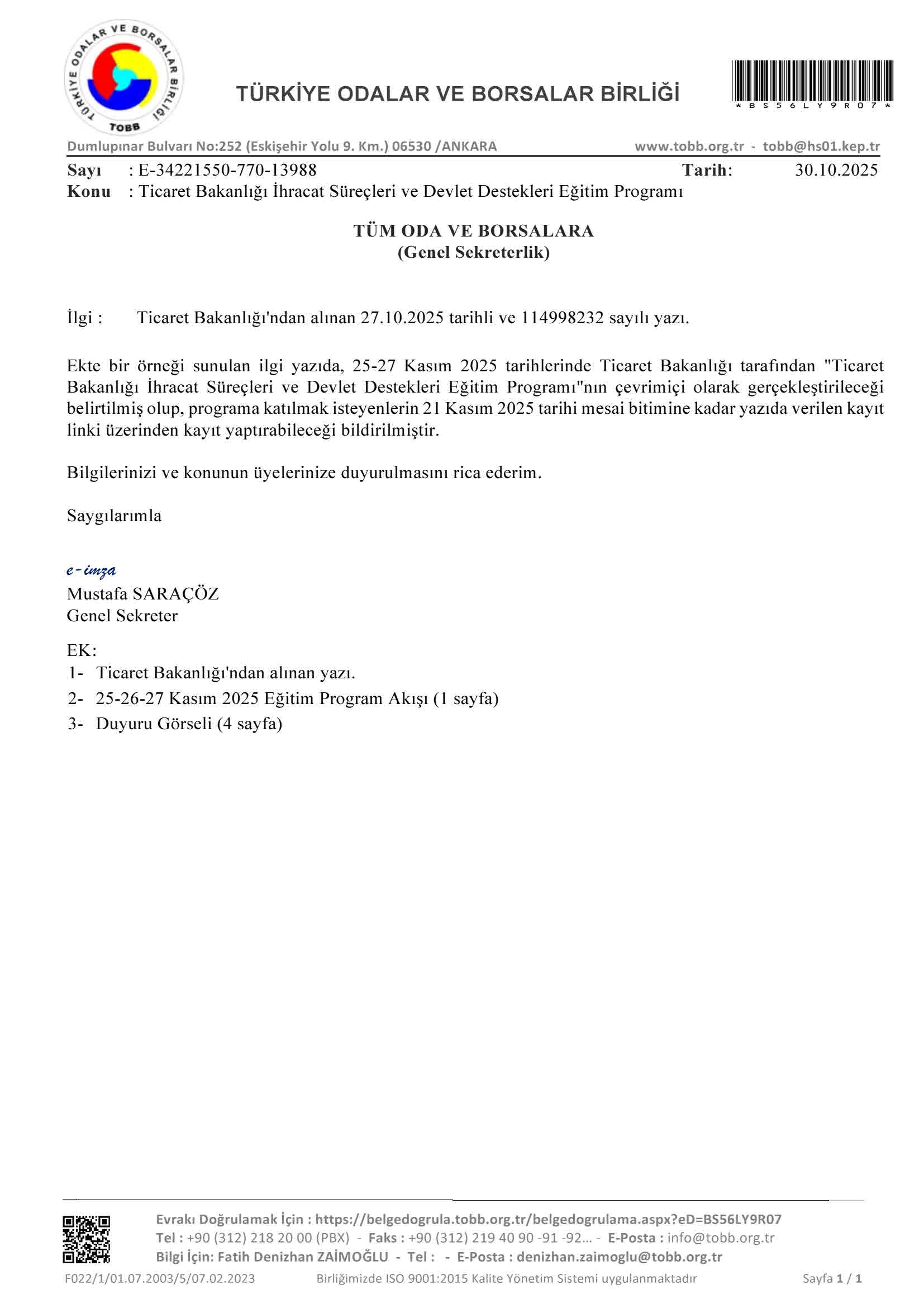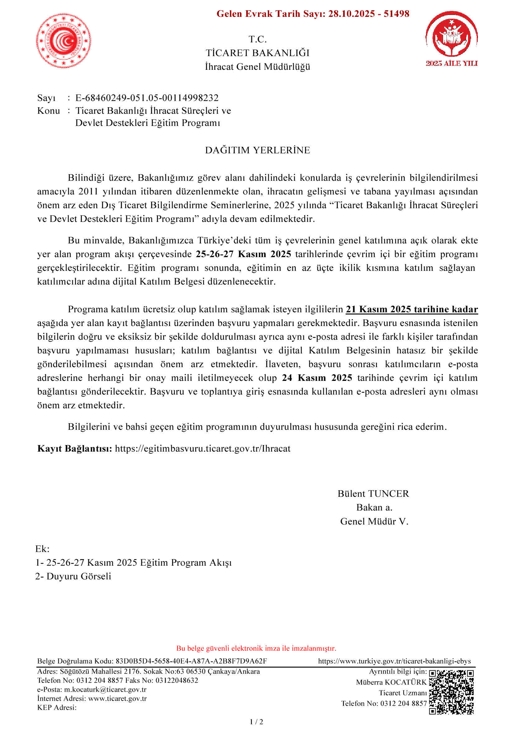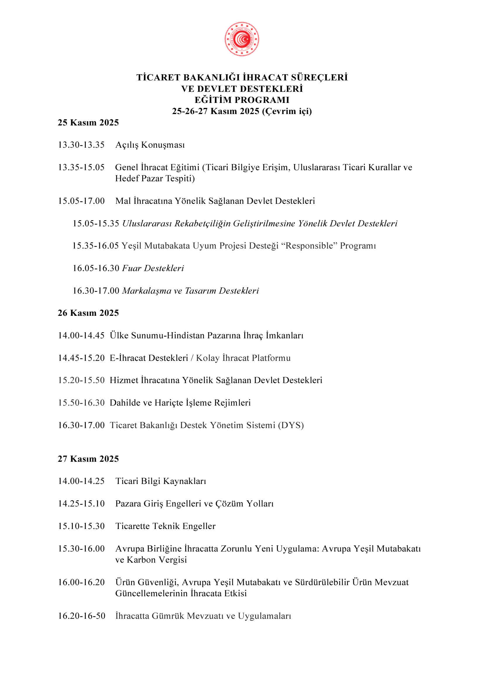 Ticaret Bakanlığı İhracat Süreçleri ve Devlet Destekleri Eğitim Programı